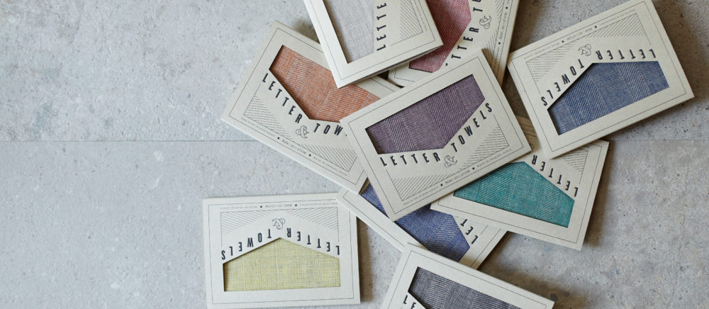 男性にも女性にも、気軽に使っていただけるデザインのタオルハンカチ「LETTER & TOWELS」。工房織座オンラインショップでは、無料ラッピングをしています。手提げ袋もお付けしておりますので、気軽な贈り物として、ぜひLETTER&TOWELSを。