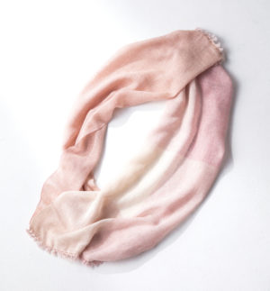 ふんわりと首に巻くことができるのが特徴で、巻くと淡いグラデーション模様が描かれてとても美しいです。