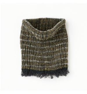 ウール混 リバーシブルネックウォーマー チャコール×カーキ