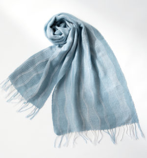 刺子ゆらぎ縞 リネンコットンマフラー ブルー