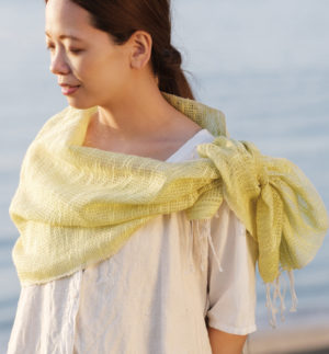 刺子ゆらぎ縞 リネンコットンマフラー ライムイエロー