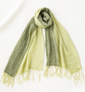 ウール混かさね色 ちぢみショールN ティーグリーン