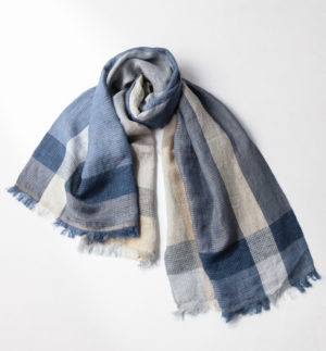 【WEB限定】 SHIBO リネンコットンチェックショール ネイビー