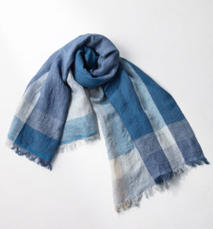 【WEB限定】 SHIBO リネンコットンチェックショール ライトブルー