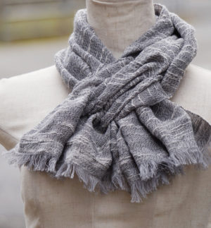 【WEB限定】 SHIBO リネンコットンチェックショール ネイビー