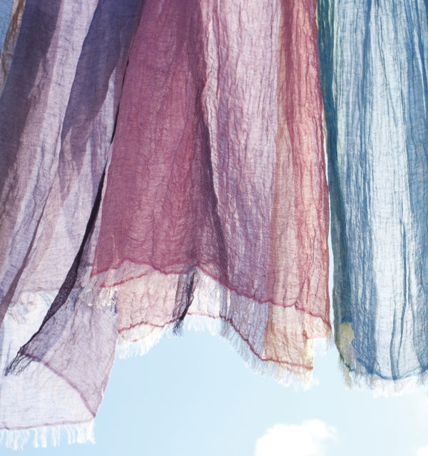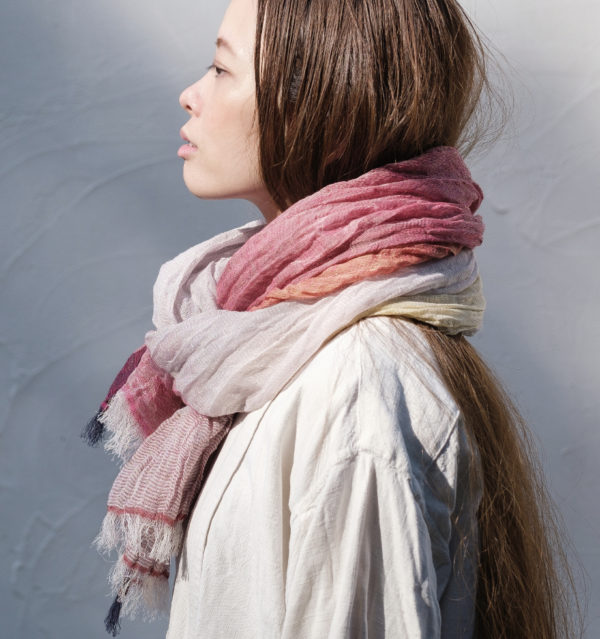 リネンと細い超長綿を、薄手で織りあげた大判ショール。
