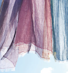 はずむようなボリューム感としわ感が肌へのまとわりつきを抑えて、さらっとした巻き心地。
