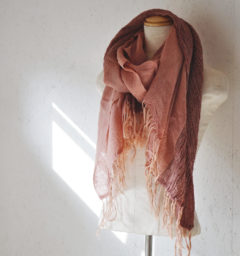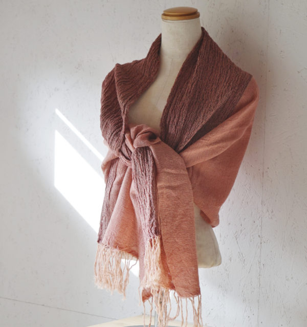 縫製をすることなく、全く異なる織り方が一緒となったショールを完成させました。