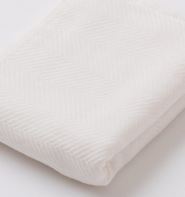 しっとりとなめらかな肌ざわりの杉綾織りガーゼ、ふんわりとやわらかな風合いの無撚糸パイル。