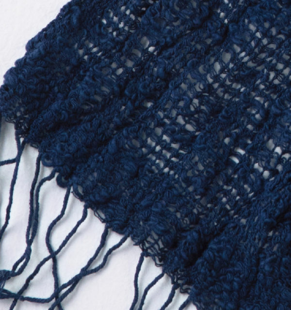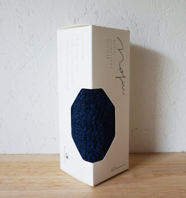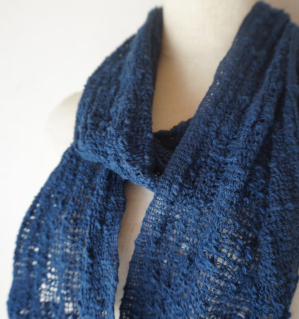もじり織りでざっくり織り、くしゅっと縮んだ状態のこのマフラー。