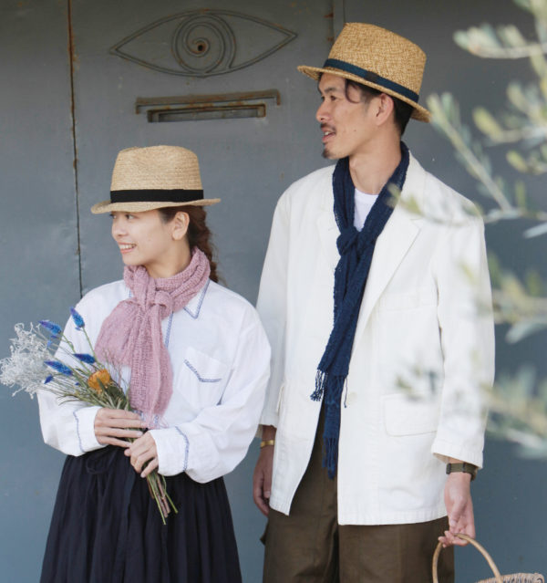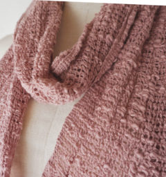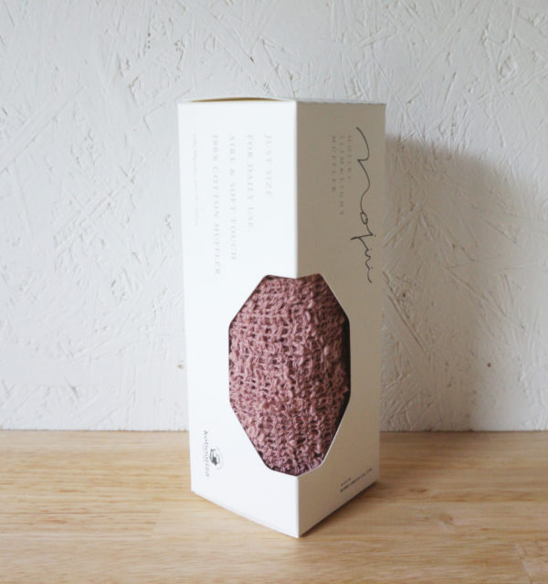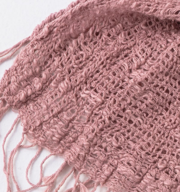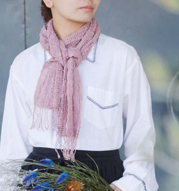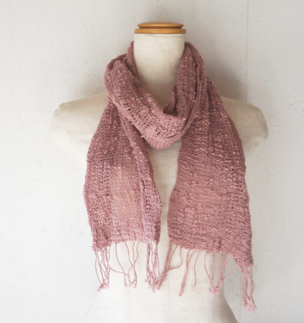 もじり織りでざっくり織り、くしゅっと縮んだ状態のこのマフラー。