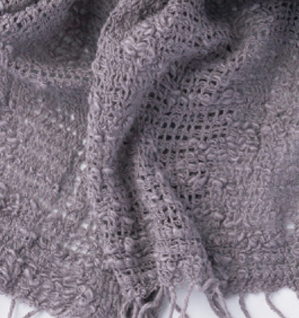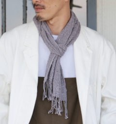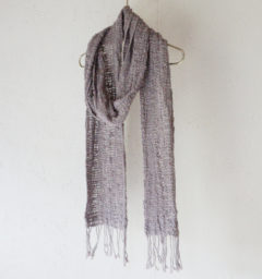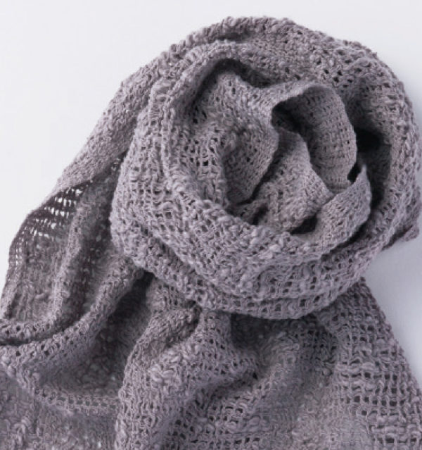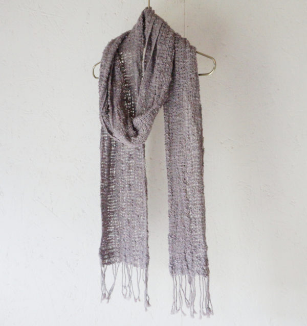 もじり織りでざっくり織り、くしゅっと縮んだ状態のこのマフラー。