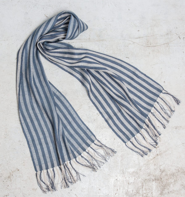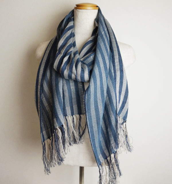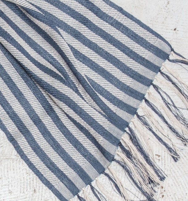 メランジリネンのインディゴと亜麻のベーシックなストライプに。