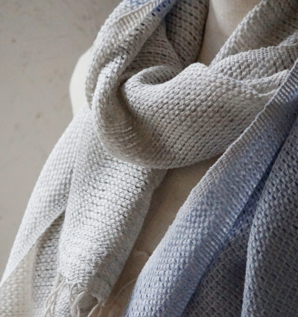 ナチュラルテイストのメランジコットンをざっくりと「もじり」で織りあげました。