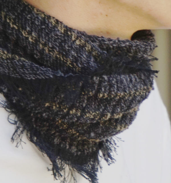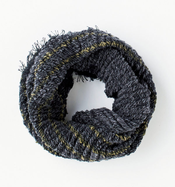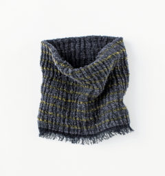 ざっくりとした比較的薄地の生地ですが、くしゅっと幾重にも重なることで空気の層ができ、首元を心地よく温めてくれます。