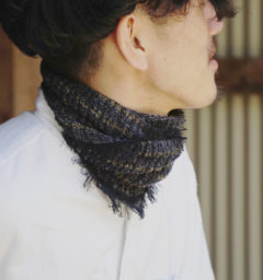 ヴィンテージ調のウールコットンを使った洗えるネックウォーマー。