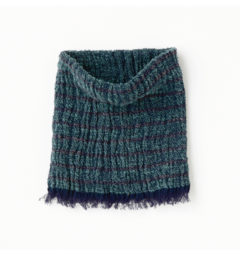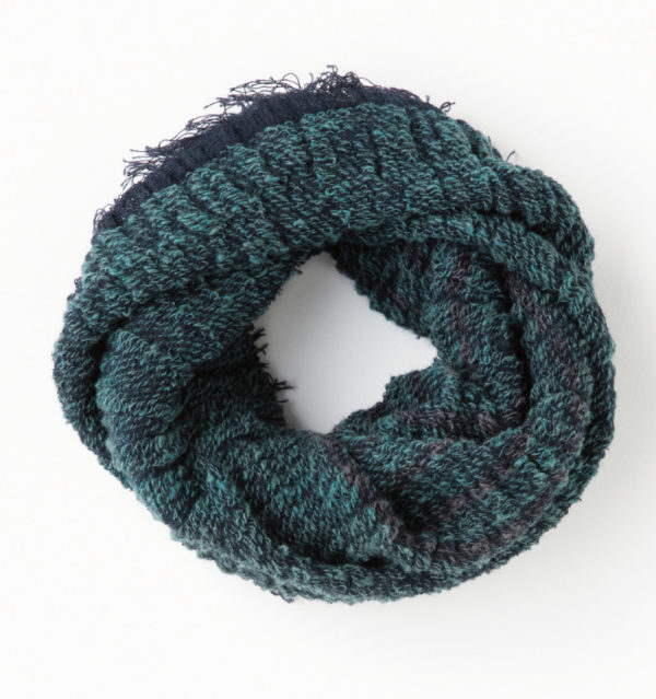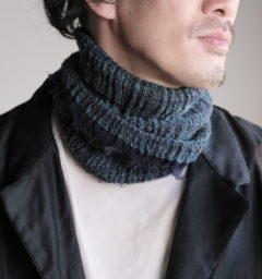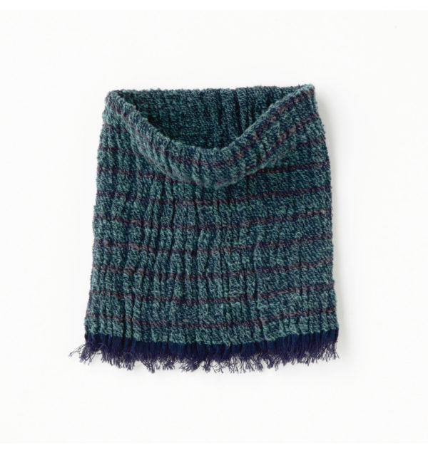 ざっくりとした比較的薄地の生地ですが、くしゅっと幾重にも重なることで空気の層ができ、首元を心地よく温めてくれます。