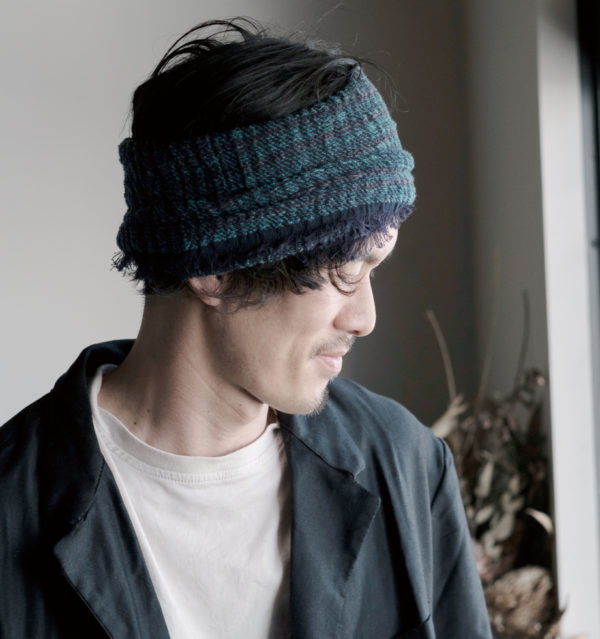 筒状の織物なので、首に通してネックウォーマー、頭にかぶってターバンと、