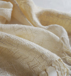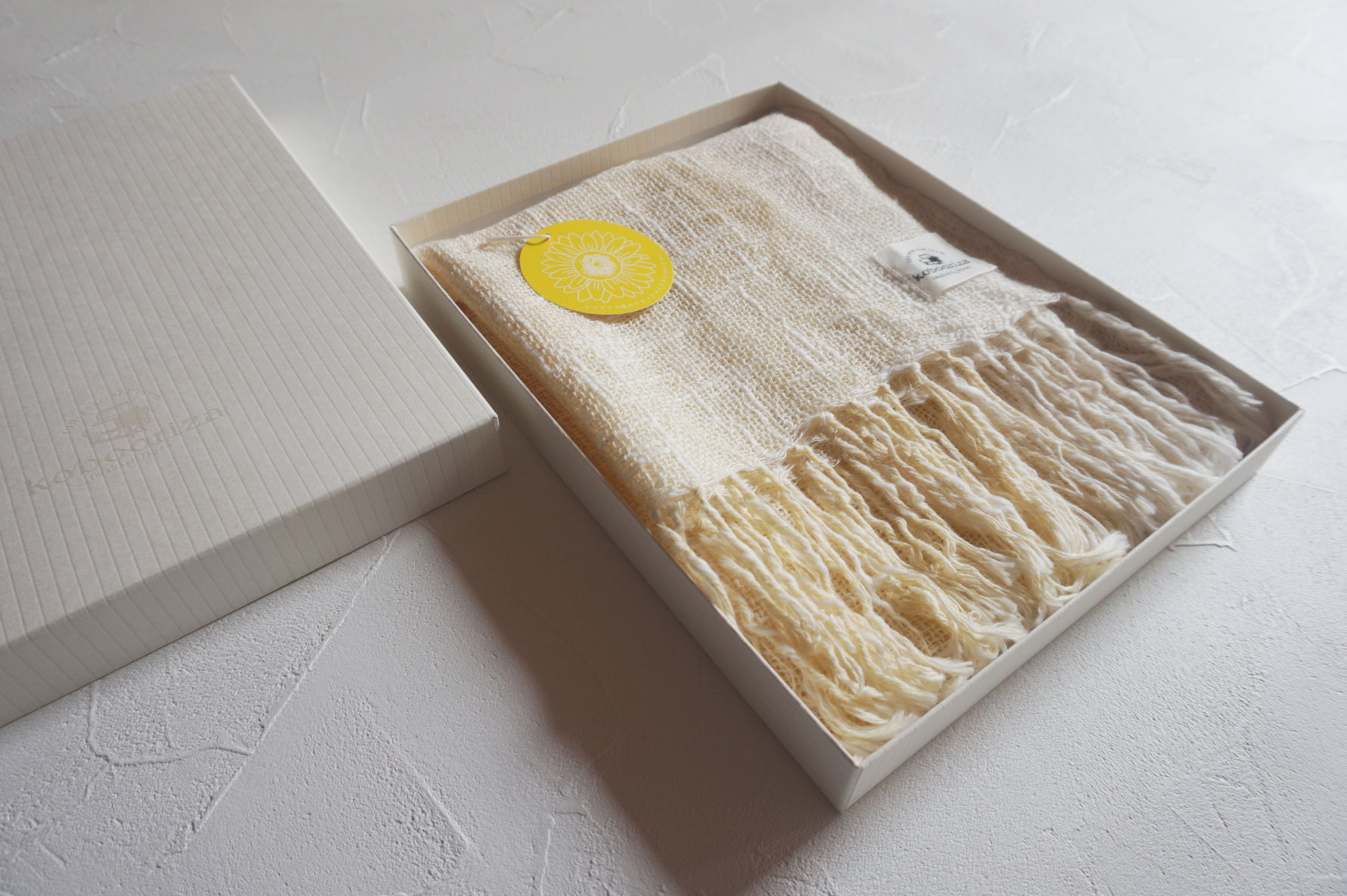 節糸に各々撚り合わせたオリジナル糸で、ざっくりと織りあげた軽やかなマフラー。