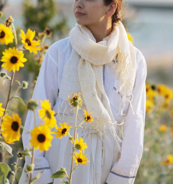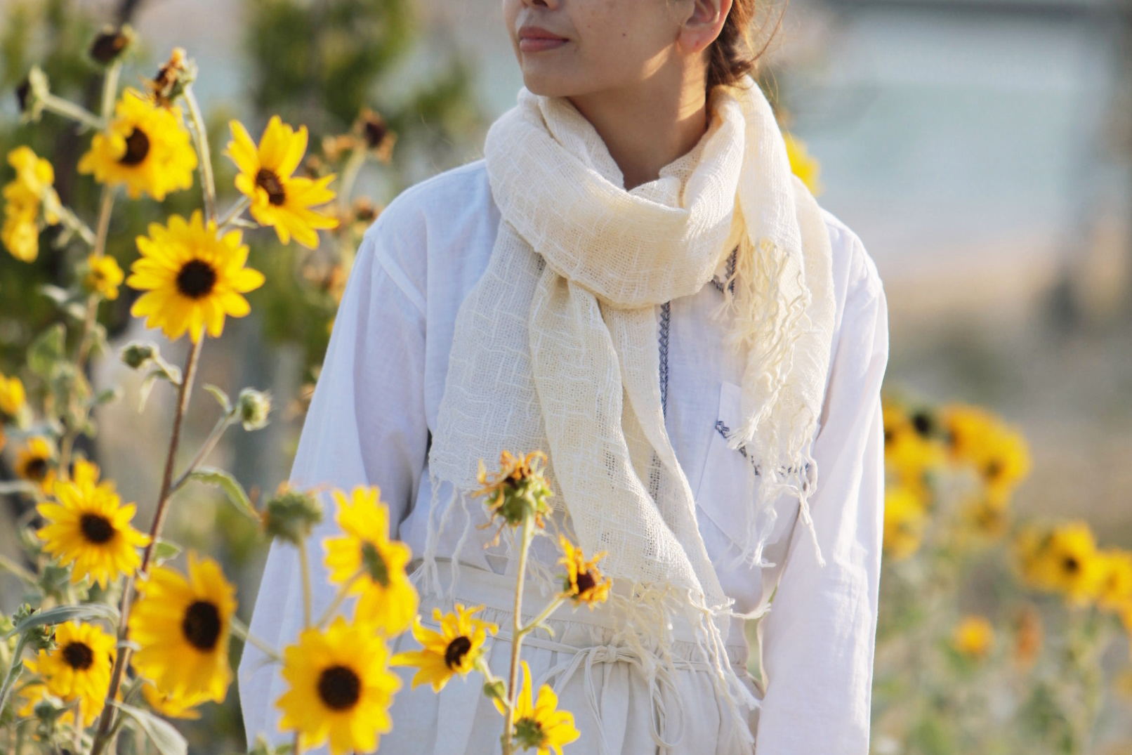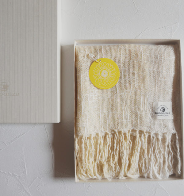 麻とボタニカルオーガニックの節糸格子マフラー ヒマワリ