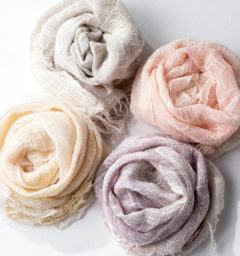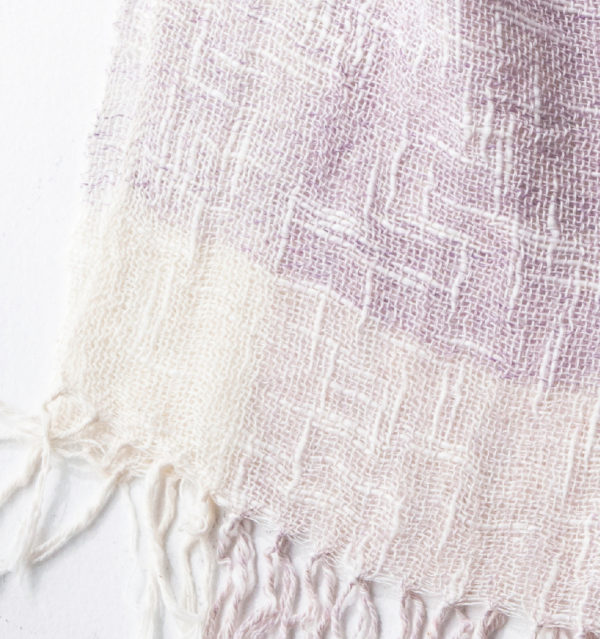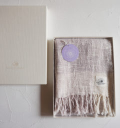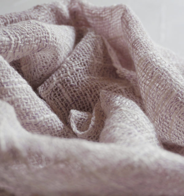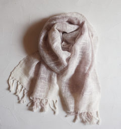 節糸に各々撚り合わせたオリジナル糸で、ざっくりと織りあげた軽やかなマフラー。