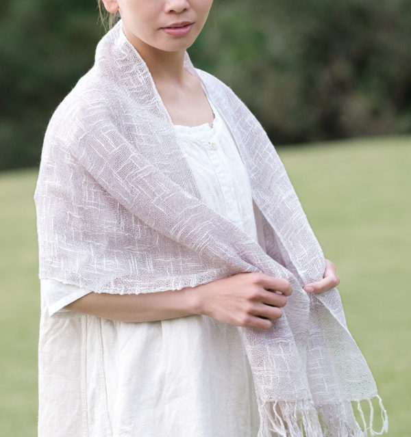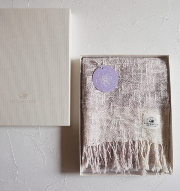 麻とボタニカルオーガニックの節糸格子マフラー パンジー