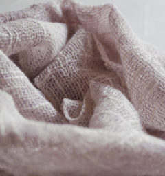 杢調リネンと、ハナから抽出した染料で染めたオーガニックコットンを、