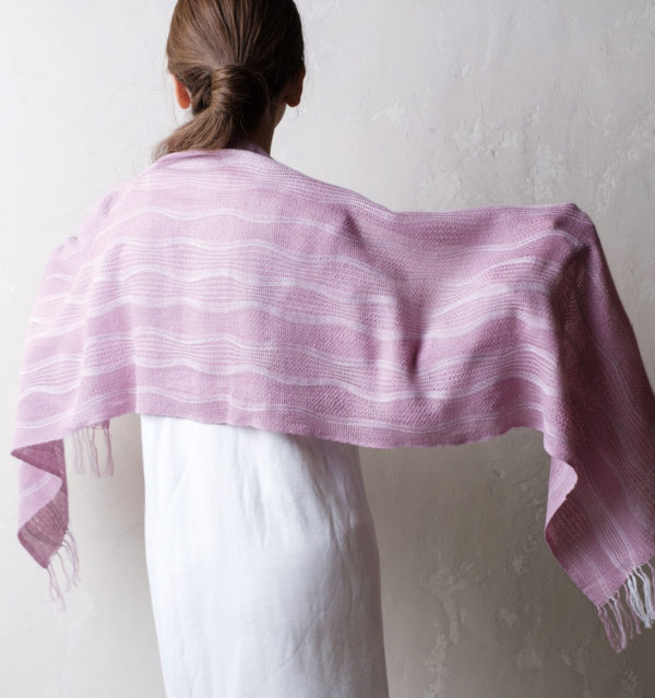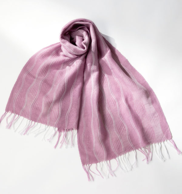 コットンライクな麻混素材の刺子ゆらぎ縞マフラー、ルックスとタッチともに涼やかさを感じる1枚。