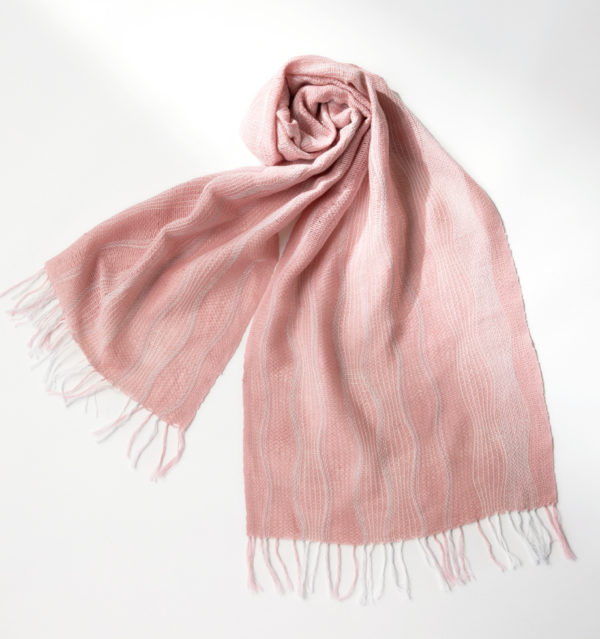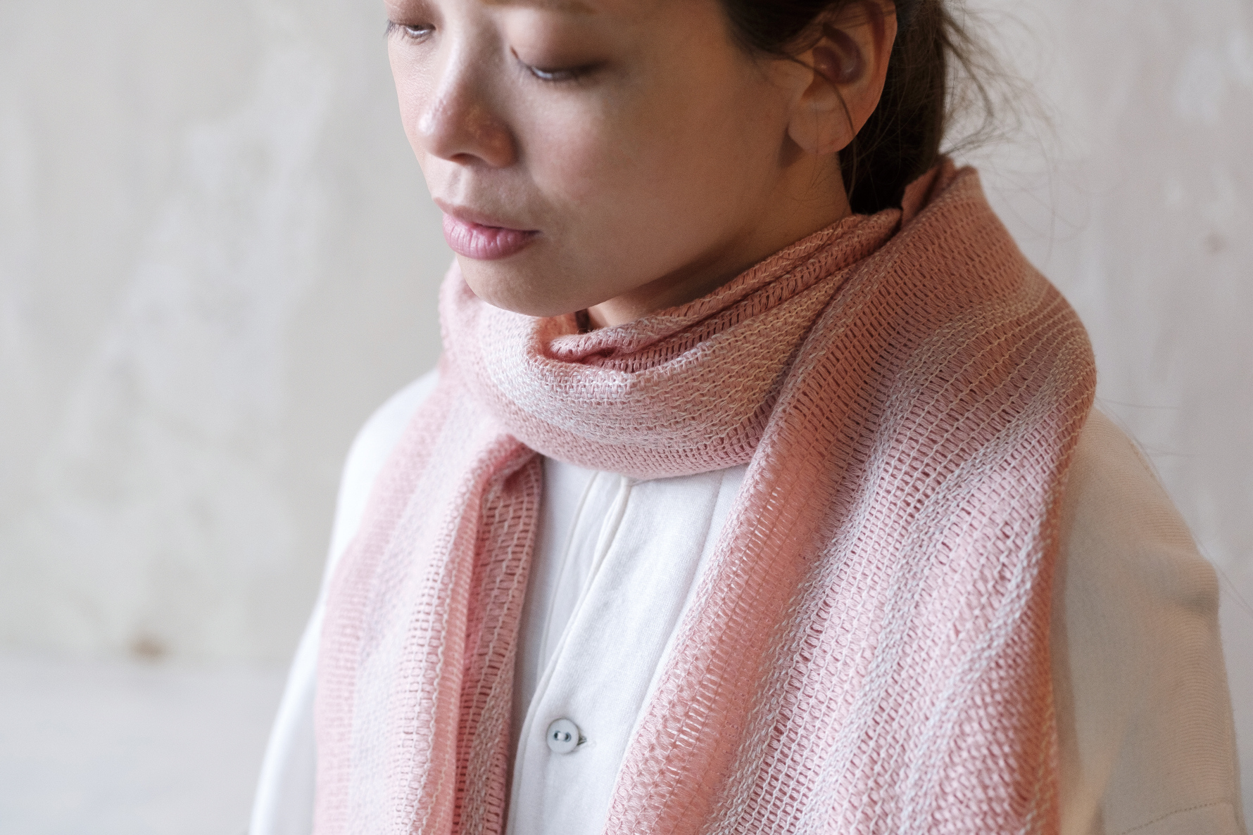 刺子ゆらぎ縞 リネンコットンマフラー ピンク