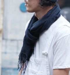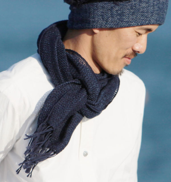 ジーンズの糸を織りあげた、男女問わず人気のマフラー。