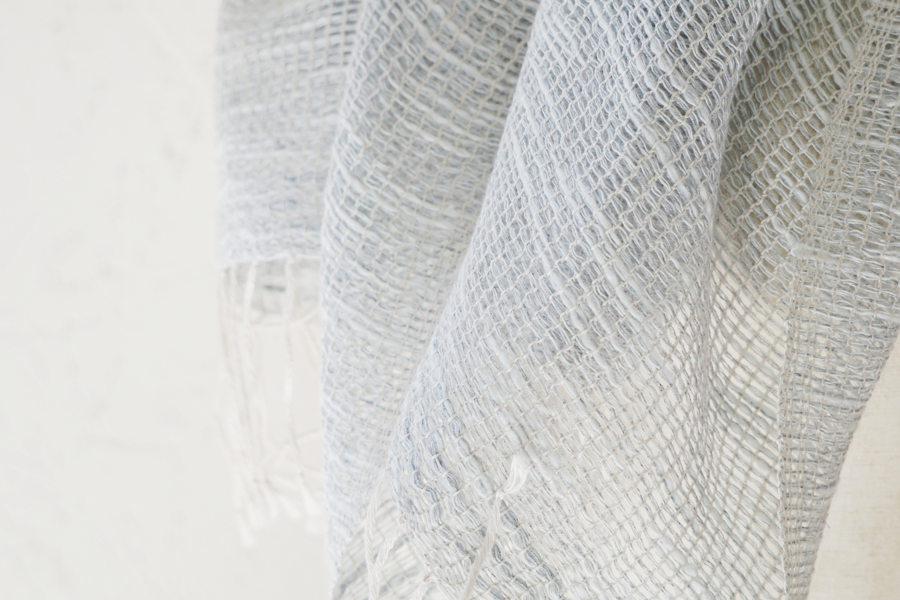 よこ糸でたて糸を縛るような形になる織り方で、粗い目にかかわらず目寄れがおきません。通気性が良く、軽やかでよこ糸の風合いが堪能できる仕上がりになるのが特徴です。