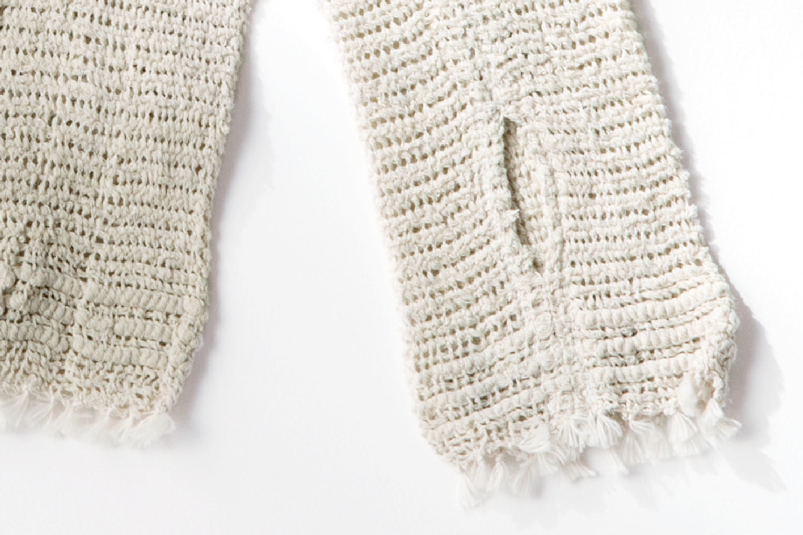 ソフトな糸を使い柔らかさに重点を置いて作りましたが、ほんの少しだけシャリっとした感触があります。