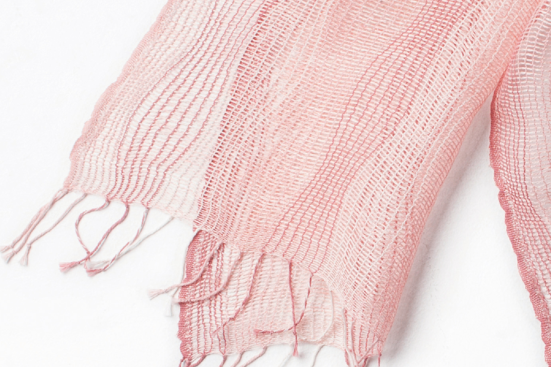 「もじり織り」により、ざっくりとした網目に織られているため、通気性があり、春夏の暑い日でも涼やかに身にまとえます。
