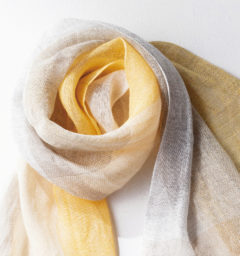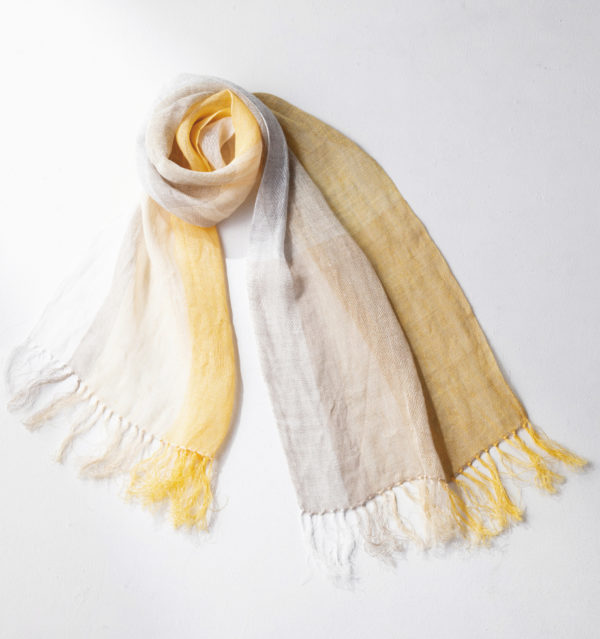 巻き方次第で、見える色が変わる遊びのきいたデザイン、麻100%のカラフルストール。