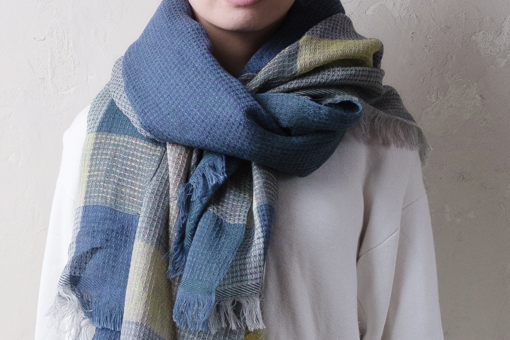 羽織ったり巻いたりすることで、あらゆる色がしっかり見えるように規格しました。