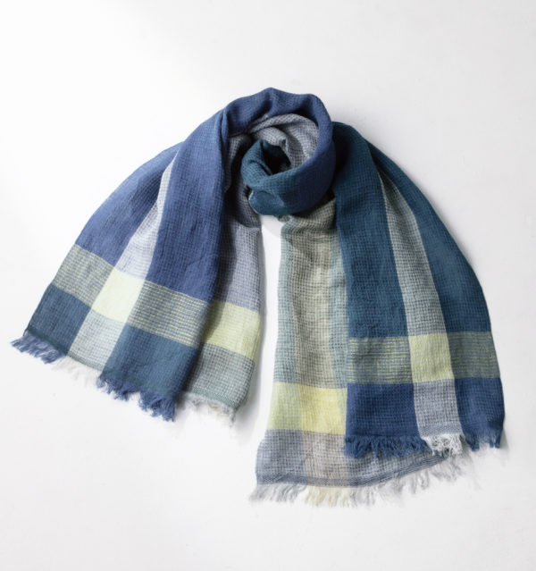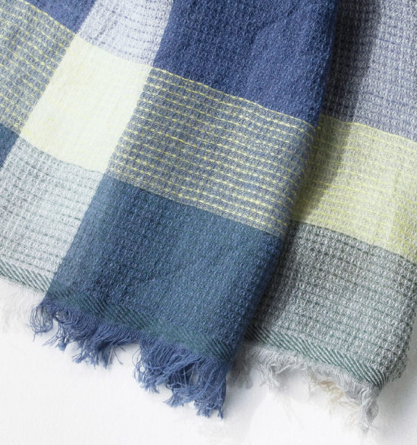 デザインは大きな格子柄。ブルーを基調に、アクセントカラーをプラス。
