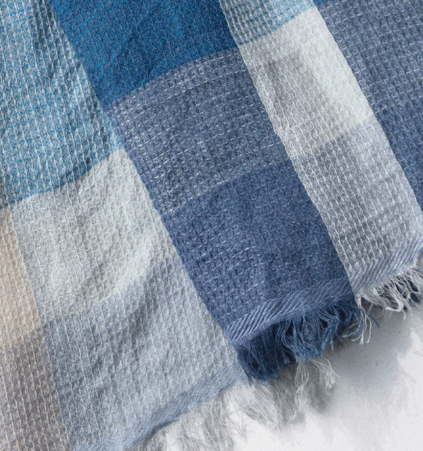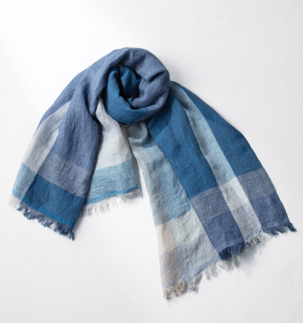 デザインは大きな格子柄。ブルーを基調に、アクセントカラーをプラス。