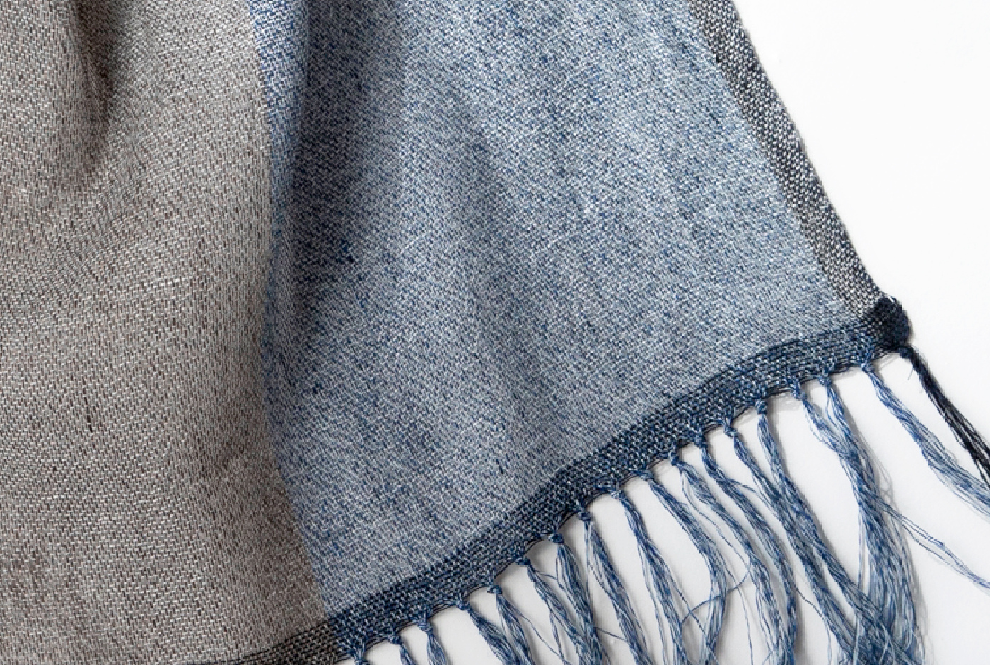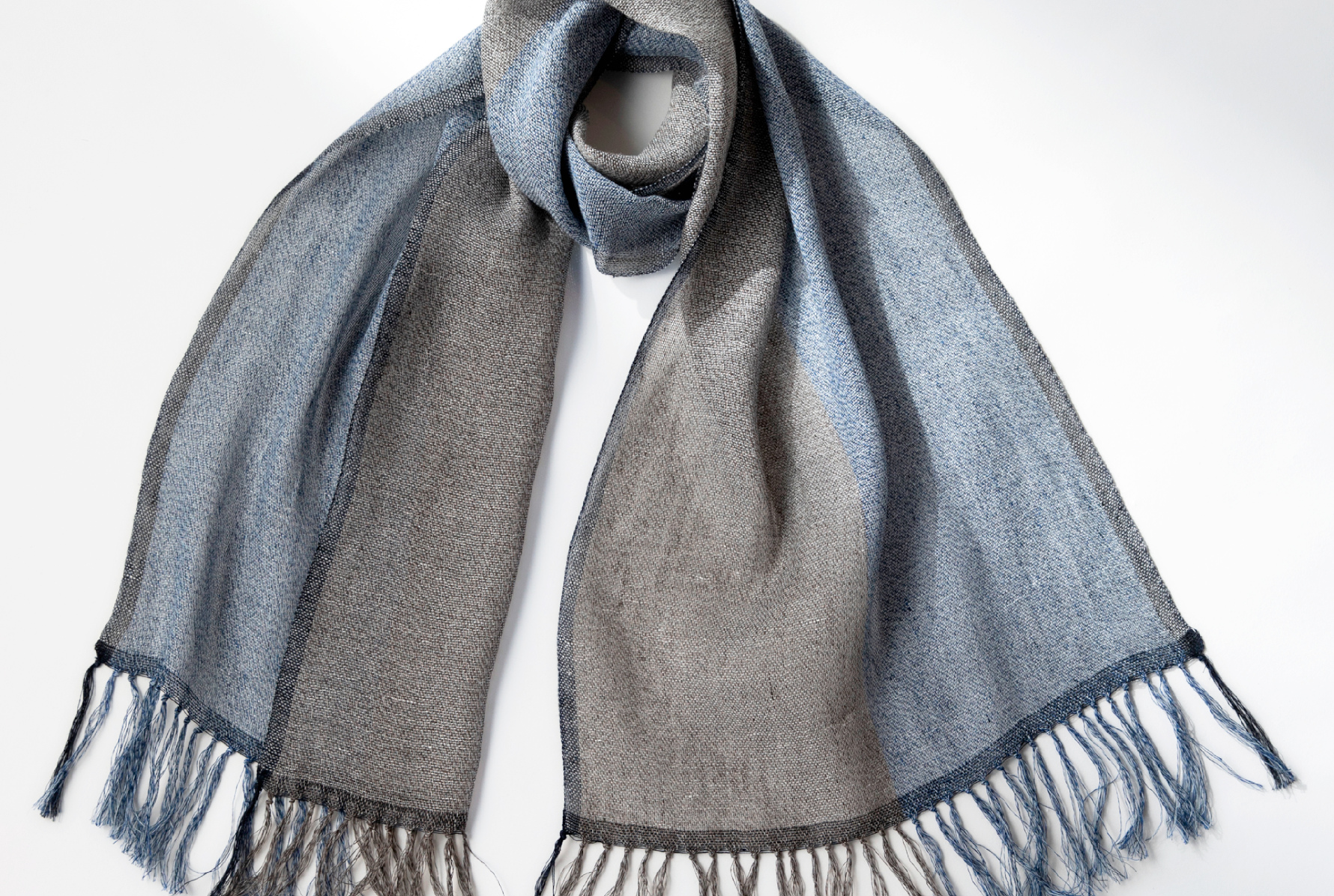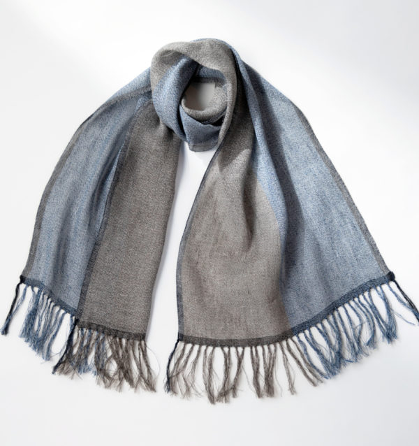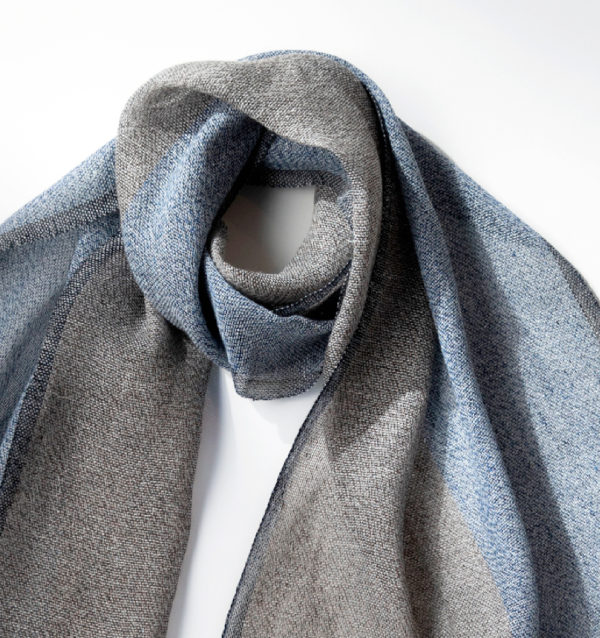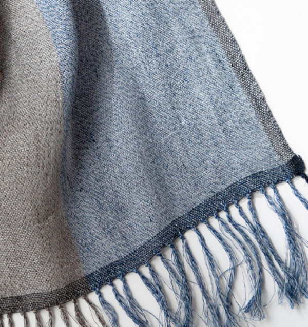 3つの色をより合わせたリネンと霜降りに染まったリネンコットンとを織り合わせたストール。