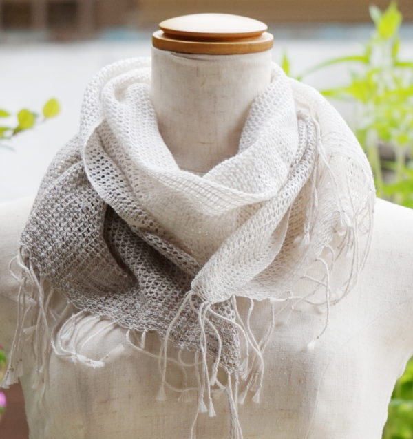 糸は2色以上の色が混ざり合った「霜降り」の糸。なので、全体気にナチュラルで柔らかい印象のカラーとなっています。
