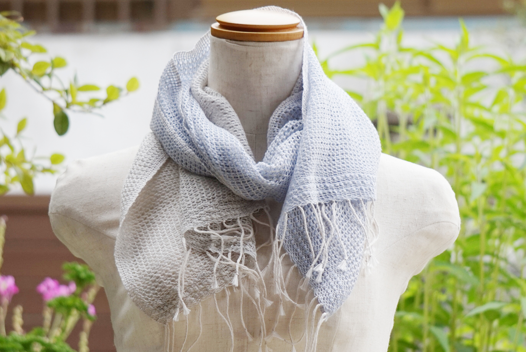 もじり織りにより、ざっくりと織りあげています。