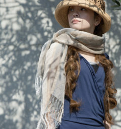 麻100%、着尺幅のシャトル織機でゆったりと織りあげた、程よい薄さで透け感のある生地。