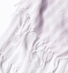 筒状から上下に長短2枚ずつの記事が連なる形で、フリンジサイドを結んだり、いろんな巻き方アレンジが楽しめます。