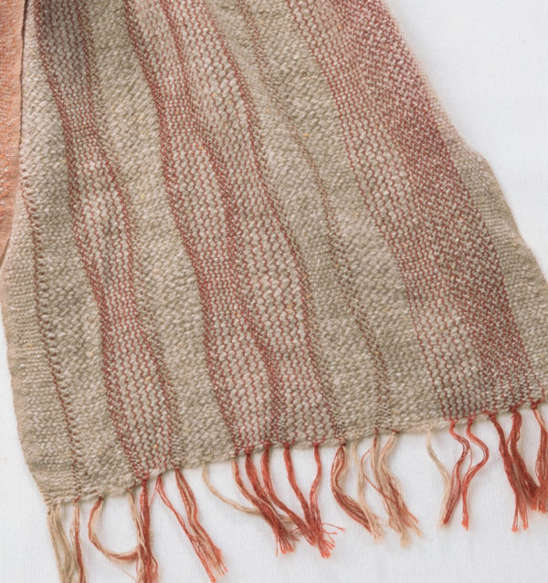 たて糸にはランダムに少し太めのウール糸を入れて、よろけ模様が立体的に浮き出るデザインに仕上げました。