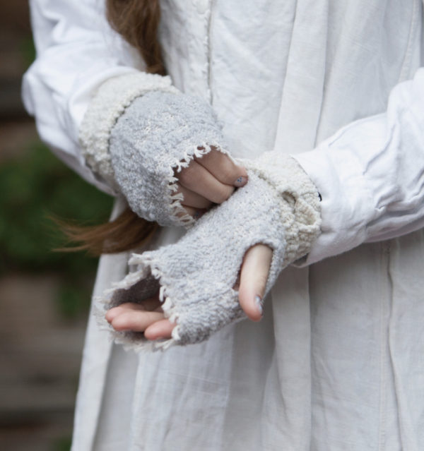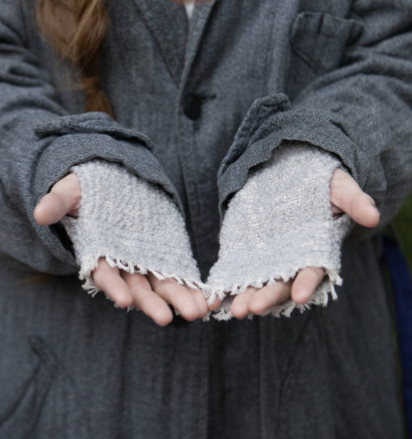 伸縮性のある糸の影響により、ウール糸はまるでパイルのような細かいリング状となり、