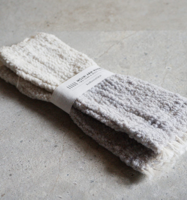 モコモコとした少し厚みのある、そして、あたたかみのある質感となっています。