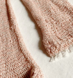 長年作り続けてきているもじりのアームカバーは、固定のファンが多い隠れた人気アイテム。 程よいフィット感と、もじり織りで織った生地の通気性の良さが大変好評です。 少しシャリっとした質感が特長ですが、身に着けたときに清涼さあり、べたつきにくく心地いいです。 手に通したとき、親指を通せる指穴つき。 両端のフリンジがかわいさをUPしています。