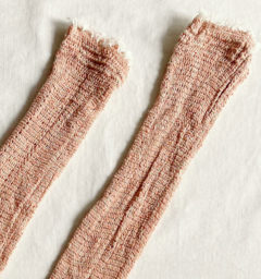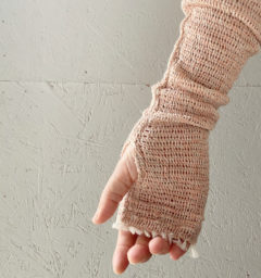 風通しのよい「もじり織り」の特徴を活かして作ったアームカバー。 試作段階で様々な色を作りましたが、本番生産に至らなかったけれど、 とても個性的でかわいい色たちを、今回「サンプルセール」として展開します。