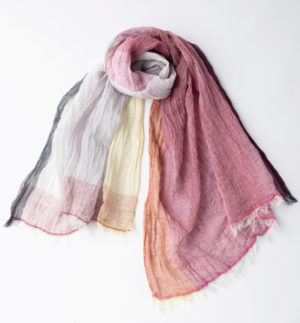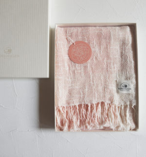麻とボタニカルオーガニックの節糸格子マフラー カーネーション