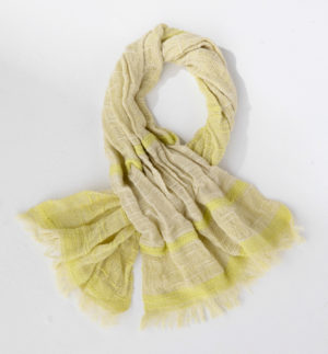 刺子ゆらぎ縞 リネンコットンマフラー ライムイエロー